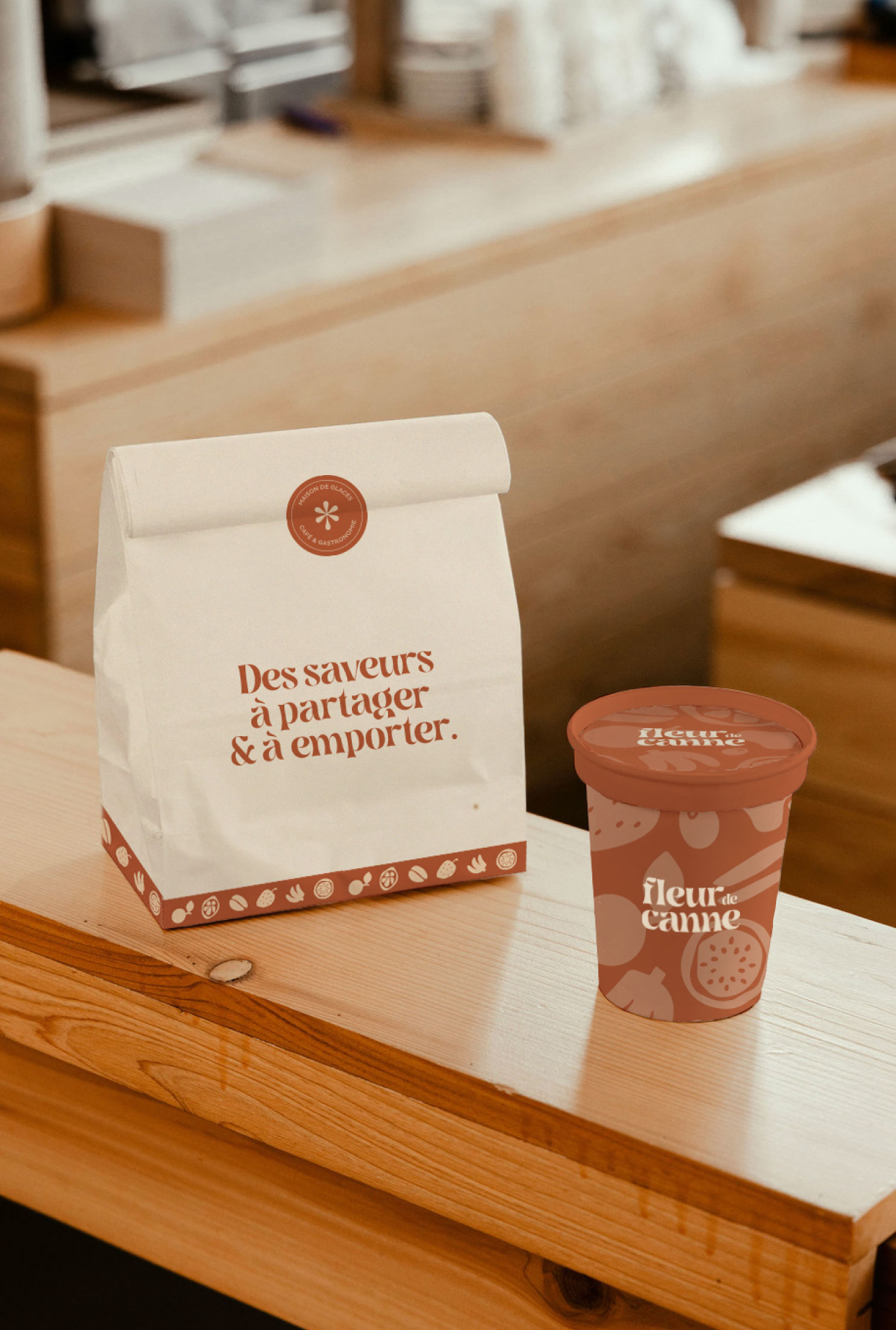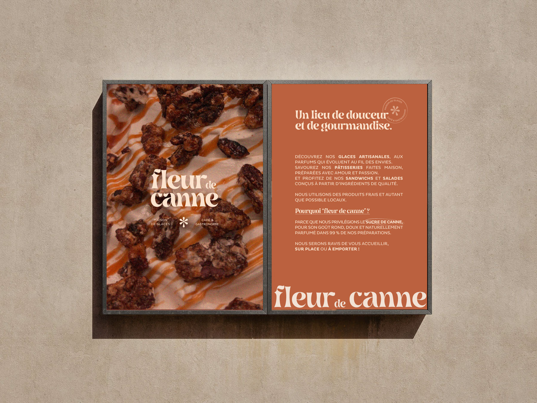L’identité visuelle de Fleur de Canne traduit à la fois l’élégance de la maison, la richesse de ses produits et la gourmandise de l’expérience qu’elle promet à ses clients.